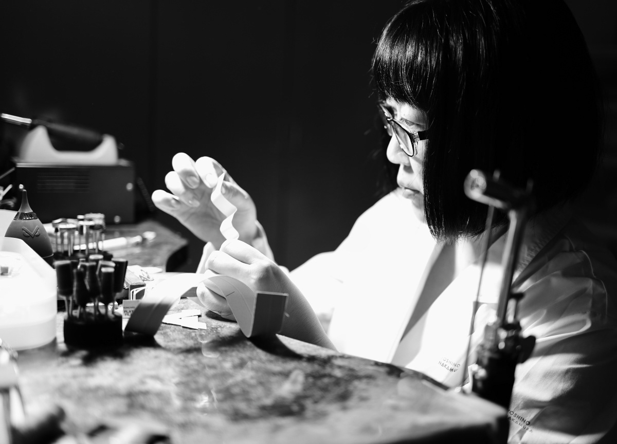 ---after graduation, learned the basics of jewelry manufacturing at Aoyama School of Jewelry and Metalsmithing and Hiko Mizuno college of Jewelry